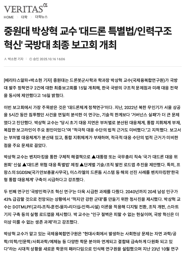 #1. 언론보도_국방대학교 대드론 연구과제 최종 발표