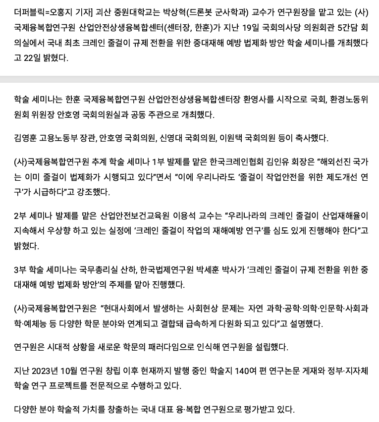 다양한 학제간 융복합연구를 통해 미래 사회의